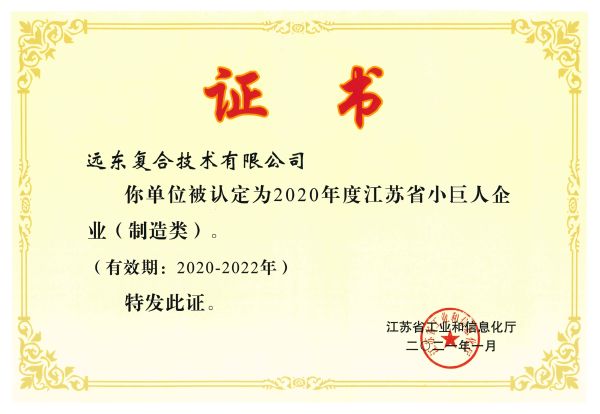 正是凭借着这些卓越的创新能力和突出的行业贡献,远东复合技术先后获得了江苏省专精特新产品荣誉、江苏省小巨人企业(制造业)荣誉以及国家级专精特新“小巨人”企业称号。而此次荣膺国家重点“小巨人”企业称号,更是国家相关部门对远东复合技术在发展潜力、创新能力、行业地位以及发展规模等方面的高度认可和充分肯定。