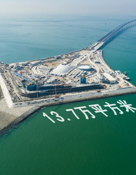深中通道西人工岛长625米,最宽处456米,岛体面积13.7万平方米,相当于19个国际标准足球场大小,是当今世界上钢圆筒围壁形成的最大人工岛,承载着深中通道桥隧转换的重要功能,是全线的先行工程、关键枢纽工程,被誉为粤港澳大湾区的“海中鲲鹏。