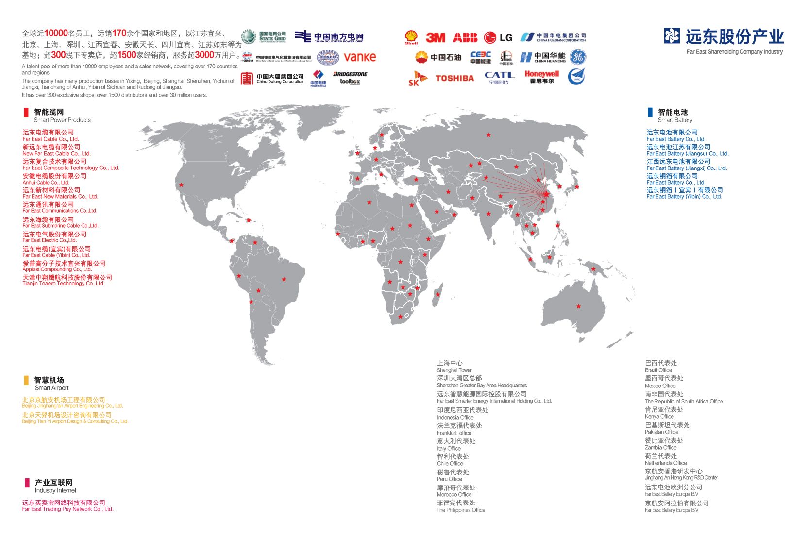 远东股份的伙伴遍及全球,“一握远东手,永远是朋友”感染着每一个客户,为公司赢得了广泛赞誉。从戈壁沙漠到雪域高原,从碧海晴天到草甸金秋,远东股份已架设起通达天下的网络。