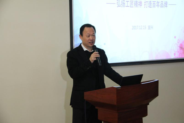 论坛环节,许国强与2015年被评为中国八大工匠之一顾秋亮、江苏中毅物联网科技有限公司董事长高晓峰、江苏紫玉金砂茶艺有限公司董事长潘霞萍等七位参会嘉宾围绕品牌精神,与参会人员分享创业历程,讨论工匠精神。