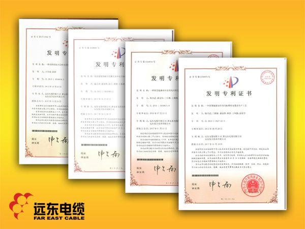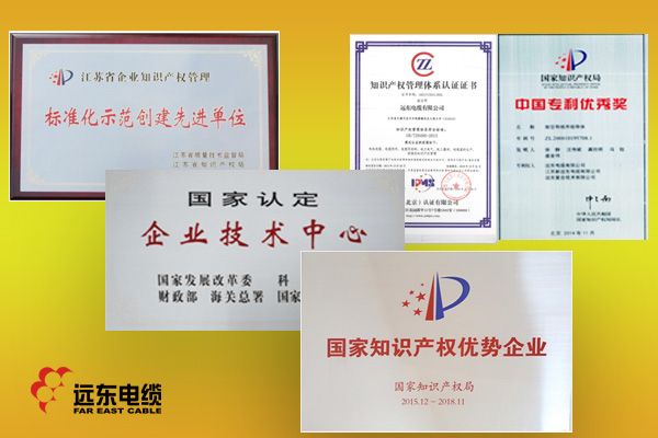 远东电缆先后通过了ISO9001质量管理、ISO14001环境管理、ISO10012测量管理、OHSAS18001职业健康安全管理、GJB国军标质量体系认证;通过了国家强制性产品(3C)、PCCC、CQC、MA、CCS、UL、KEMA、TUV、CE、NATA认证及南非SABS认证、阻燃认证、耐火电缆认证等。自主创新硕果累累,截至目前累计拥有国际先进水平的新产品30余项,拥有产品专利400余件,其中发明专利50件,主持或参与国家、行业、团体标准起草33项,电线电缆行业中独有技术13项。