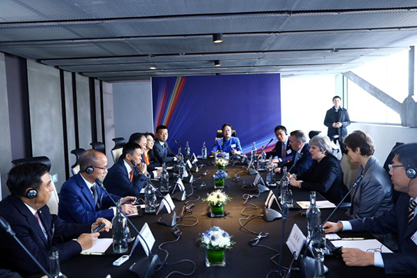 特蕾莎·梅在中英商业论坛发表主题演讲