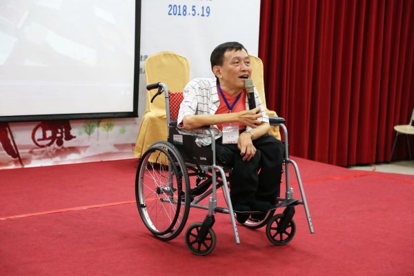 代国宏表示,身障人需要创业,不仅是因为不想成为家里的负担,而且在实现人生价值、实现真正意义上的无障碍生活方面都有十分重要的意义。“我们每个人都需要保持学习的态度,不停学习,不停思考,成为对社会有用的人。”人因为梦想而伟大,我们为自己的梦想奋斗,为别人的梦想努力,为社会的发展奉献自己,代国宏对未来充满理想:“勇敢是幸福的!幸福是奋斗出来的!” 混障综艺团团长刘铭用自己的故事向现场来宾传递了乐观向上的生活态度,坐在轮椅上的他身上看不到一点悲观的影子,“希望两岸每个人对身障人树立起正确的观念,积极面对生活。”自身作为身障人的林进兴不仅用乐观改变了自己的生活,更成立了脊髓损伤潜能发展中心,为身障人们提供基本生活技能培训,为他们筑起生活的信心及希望。