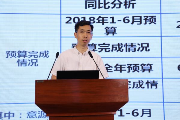 蒋华君作智慧能源2018年上半年度经营分析报告,他指出,上半年在智慧能源全体同仁的共同努力下,公司营收实现了增长,净利润同比大增。同时,他希望大家同心协力,克难奋进,再创佳绩。