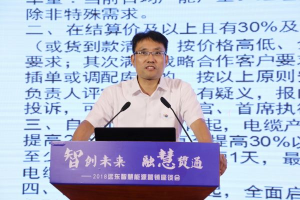 此外,投资人、智慧能源资深总监兼电缆产业监事、远东电缆副总经理陈海萍,投资人、电缆产业开发服务部副总监刘利,投资人、电缆产业开发服务部负责人张浩,投资人、智慧能源首席财务官兼远东电缆产业副总经理李太炎,投资人,党委统战委员、电缆产业副总经理兼远东电缆资深副总经理朱长彪进行了营销政策解读。随后,各参会营销经理就实际工作中遇到的营销政策、公司制度等问题展开讨论,各相关职能部门领导对营销经理提出的问题进行了解答,并承诺落实到位。