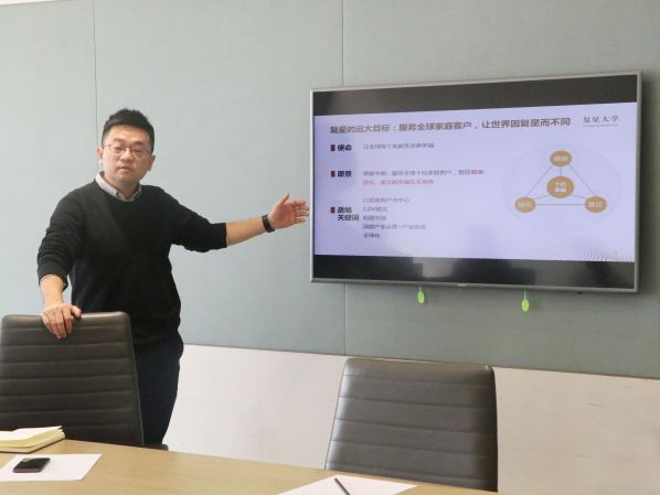 交流学习中,刘小雪首先对远东的到来表示欢迎,并从产业投资、C2M战略和有叻计划三个方面对复星做了详细的介绍,也对复星集团的基本战略经营规划理念做了讲解。