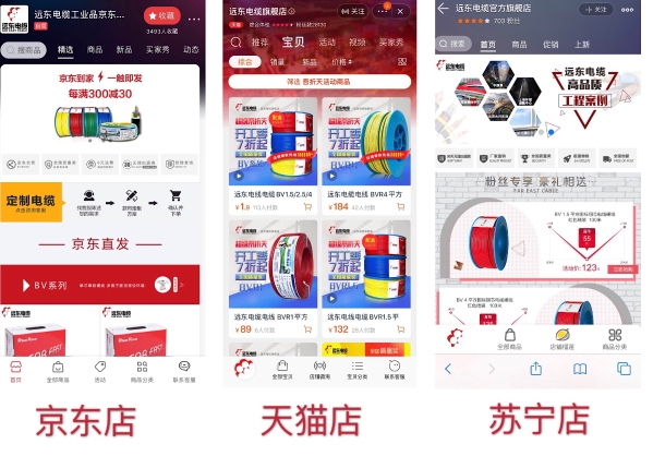 √方法四:远东电缆已入驻天猫、京东、阿里巴巴、苏宁易购多个电商平台,请精准识别各电商平台上远东电缆官方唯一网店。
