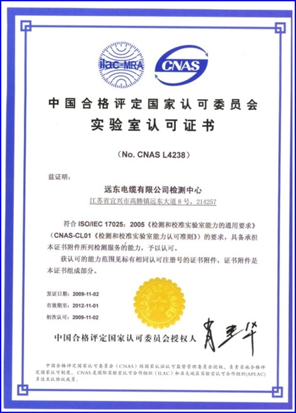 在检测检验层面,远东检测中心被认定为国家认可实验室,拥有18个实验室,各类检测设备300余台,可以对电缆的全性能进行检验。这些设备和实验室保证着电缆的电性能、机械性能、热性能、阻燃性能等多项性能的高水平交付。