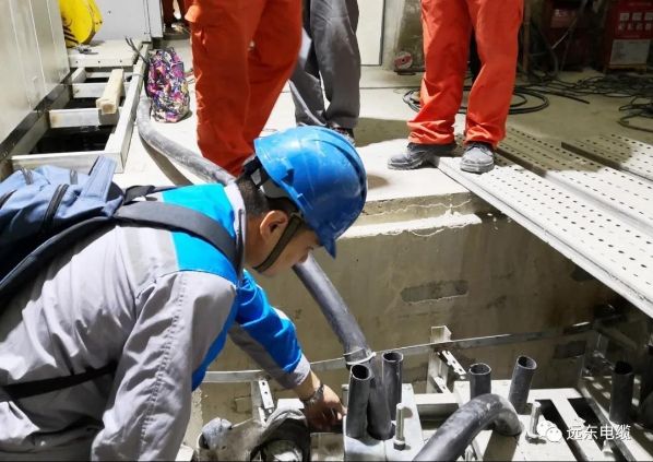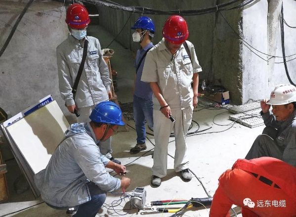 在公司上下的共同努力下,从2020年4月首批产品开始敷设,到5月份最后一根垂吊敷设电缆成功完成敷设安装,远东为白鹤滩水电站项目专供的14根垂吊电缆已全部完成敷设安装并通电试运行。这两个月内,远东技术研发和市场服务工程师全程跟踪,破解了深水泵供电系统一道道施工、供电技术难题,保障了垂吊电缆敷设工作的安全、有序进行。这是远东垂吊敷设电缆在水力发电新能源领域的第二次实践,更是垂吊敷设电缆吊装敷设技术的又一次新突破。