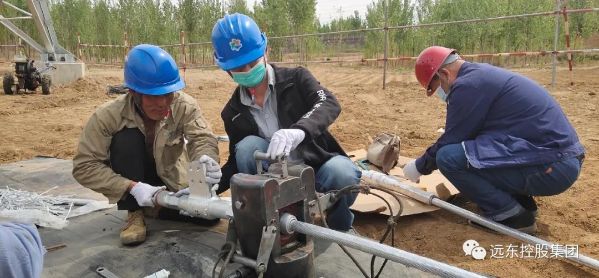 市场服务部工程师戴云飞(中)指导金具压接
