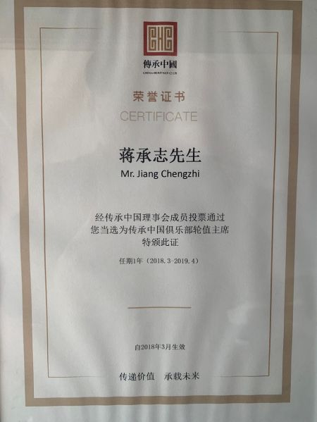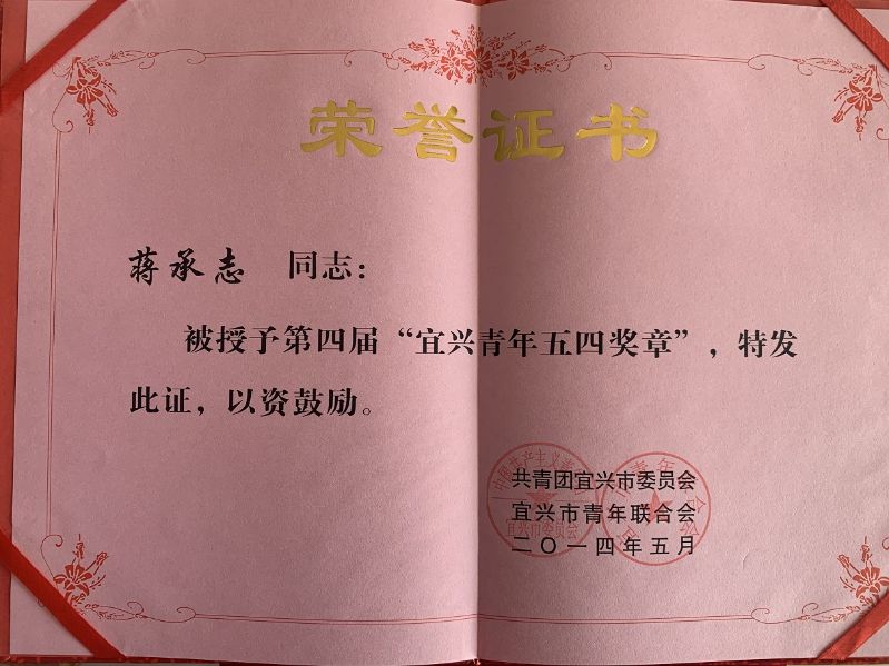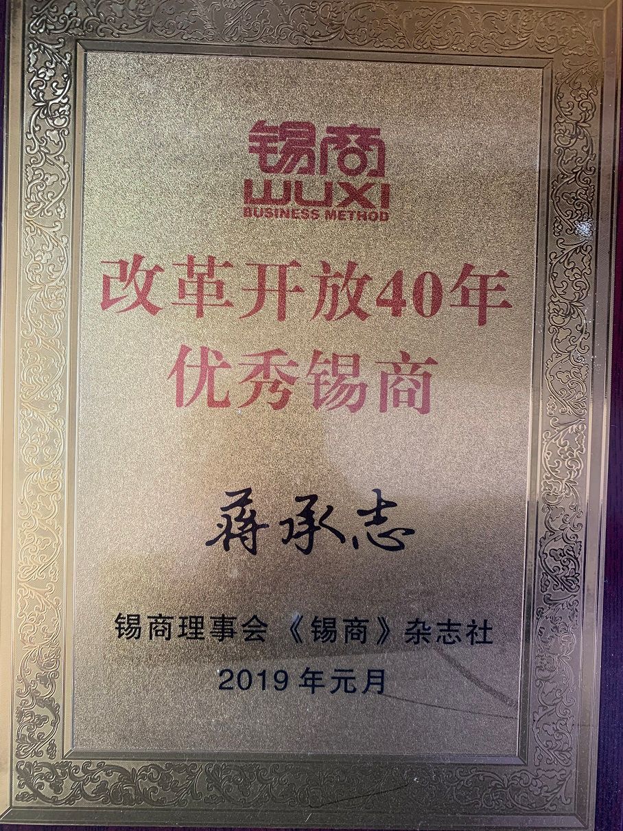 蒋承志还曾获宜兴市优秀共产党员,宜兴青年五四奖章,改革开放40年优秀锡商,2019年江苏青商年度人物,2017华东区十大经济年度人物,2015苏商新领军者,2013—2014年度苏商传承十大魅力少帅,第十届机械工业优秀(领航)企业家等荣誉。